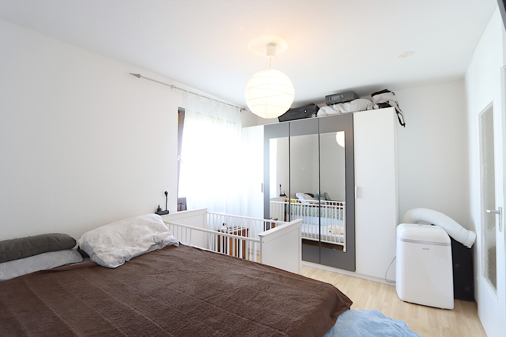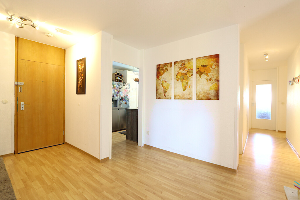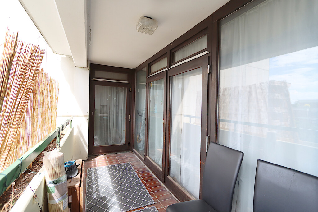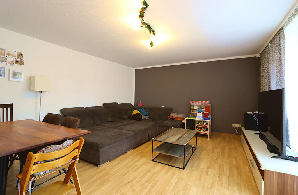 Das Herzstück der Wohnung ist der großzügige Wohnbereich. Große Fenster lassen viel Tageslicht herein und sorgen für eine freundliche, einladende Atmosphäre. Die offene Raumgestaltung bietet Platz für eine gemütliche Sofaecke, einen Essbereich oder individuelle Einrichtungsideen. Von hier aus betreten Sie den nach Südwesten ausgerichteten Balkon. Der überdachte Außenbereich lädt ein, die Nachmittags- und Abendsonne zu genießen, und ist dank seiner Überdachung nahezu ganzjährig nutzbar – ob beim morgendlichen Kaffee oder einem Glas Wein am Abend.