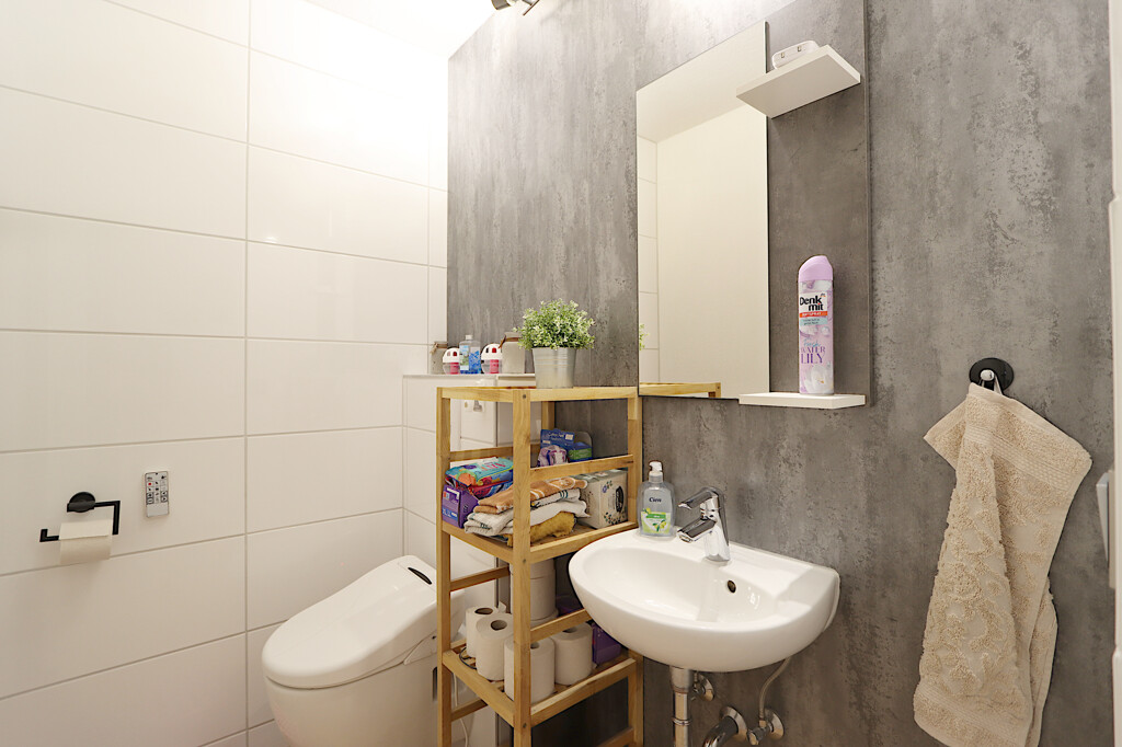 Vom Wohnbereich aus öffnet sich der L-förmige Flur zum privaten Rückzugsbereich der Wohnung. Die klare Trennung von Wohn- und Schlafbereich schafft eine angenehme Balance zwischen Geselligkeit und Privatsphäre – perfekt, um nach einem langen Tag zur Ruhe zu kommen. Linkerhand erreichen Sie zunächst das WC, gefolgt vom geräumigen Familienbad mit Badewanne und Handwaschbecken – ideal für entspannte Bäder oder den schnellen Start in den Tag. Im weiteren Verlauf erschließen sich drei helle, gut geschnittene Zimmer, die ganz nach Bedarf als Schlaf-, Kinder-, Gäste- oder Arbeitszimmer genutzt werden können. Am Ende des Flures befindet sich zudem eine charmante Nische, die sich wunderbar als kleiner Homeoffice-Bereich oder zusätzlicher Stauraum eignet.