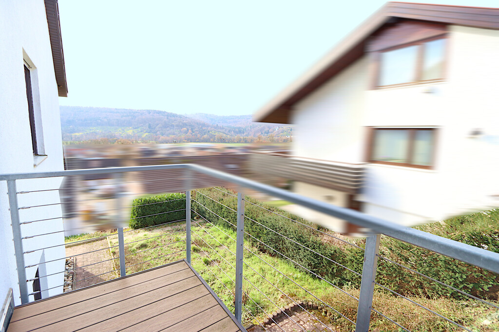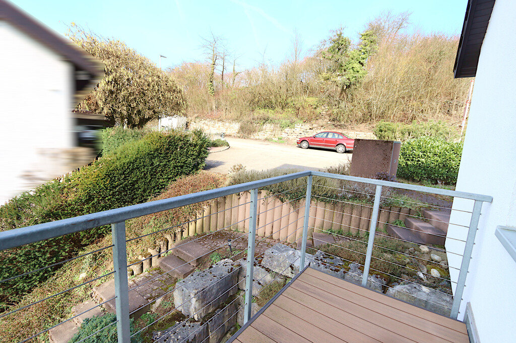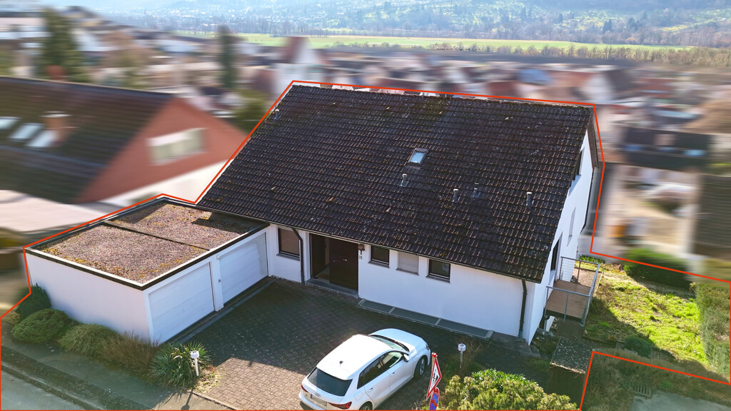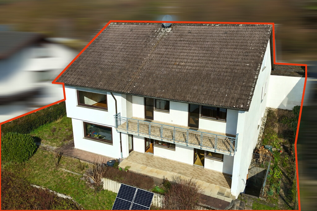 Bereits beim ersten Eindruck überzeugt die Immobilie durch ihre ruhige Hanglage mit schönem Blick über den Ort und die umliegende Landschaft. Die erhöhte Position sorgt für ein angenehmes Wohngefühl sowie viel Privatsphäre. Zwei Balkone, großzügige Terrassenflächen und der Garten bieten viele Möglichkeiten die frische Luft zu genießen. Vor dem Haus stehen eine Doppel-Garage sowie weitere Stellmöglichkeiten auf der gepflasterten Zufahrt zur Verfügung.