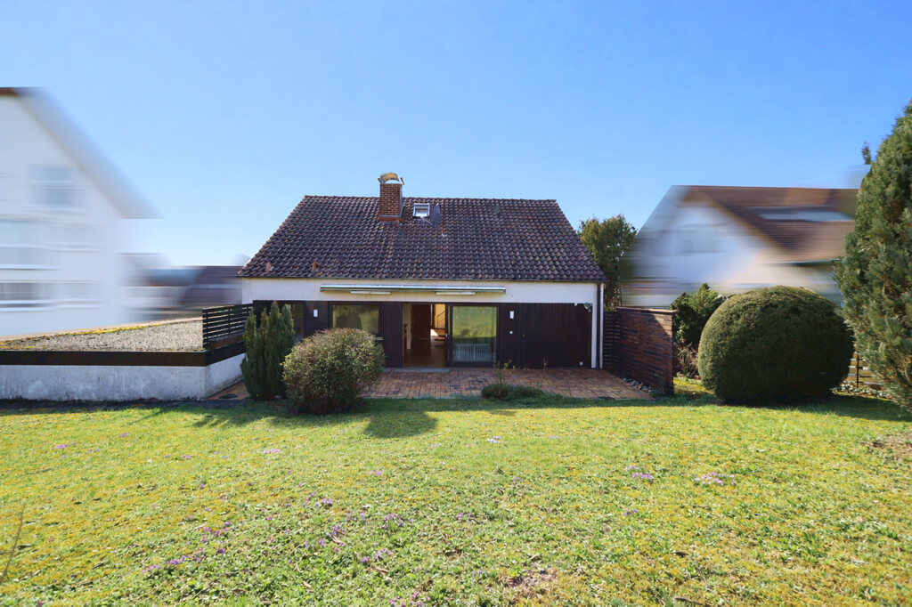 Der großzügige Wohn- und Essbereich bildet das Herzstück des Hauses und besticht durch seine helle, einladende Atmosphäre. Große Fensterflächen lassen viel Tageslicht herein und schaffen einen harmonischen Übergang zum Außenbereich mit Blick in den Garten. Von hier aus gelangen Sie direkt auf eine der beiden Terrassen sowie in den geschmackvoll angelegten Garten, der das Haus sowohl zur Vorder- als auch zur Rückseite umrahmt.