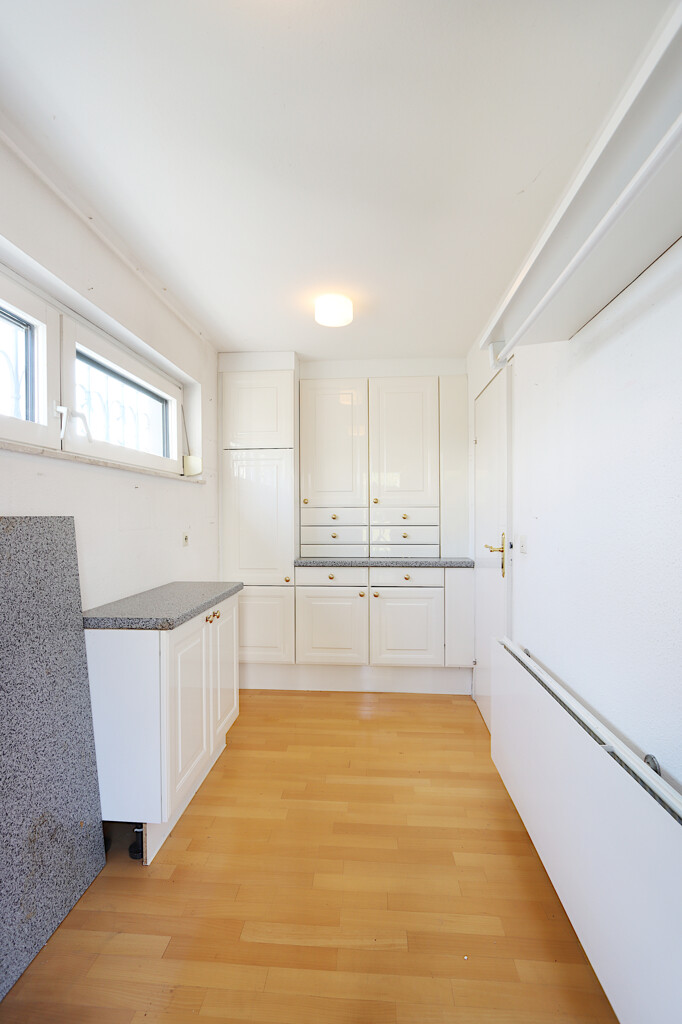 Auch das Untergeschoss überzeugt durch seine Vielseitigkeit. Neben klassischen Keller- und Abstellräumen stehen hier Wohnräume zur Verfügung, die vielfältig genutzt werden können. Eine hauseigene Sauna bietet zusätzlichen Komfort und die Möglichkeit zur Entspannung im eigenen Zuhause. Darüber hinaus eröffnet die vorhandene Flächenstruktur Potenzial zur Realisierung einer Einliegerwohnung, wodurch sich zusätzliche Nutzungsperspektiven ergeben.