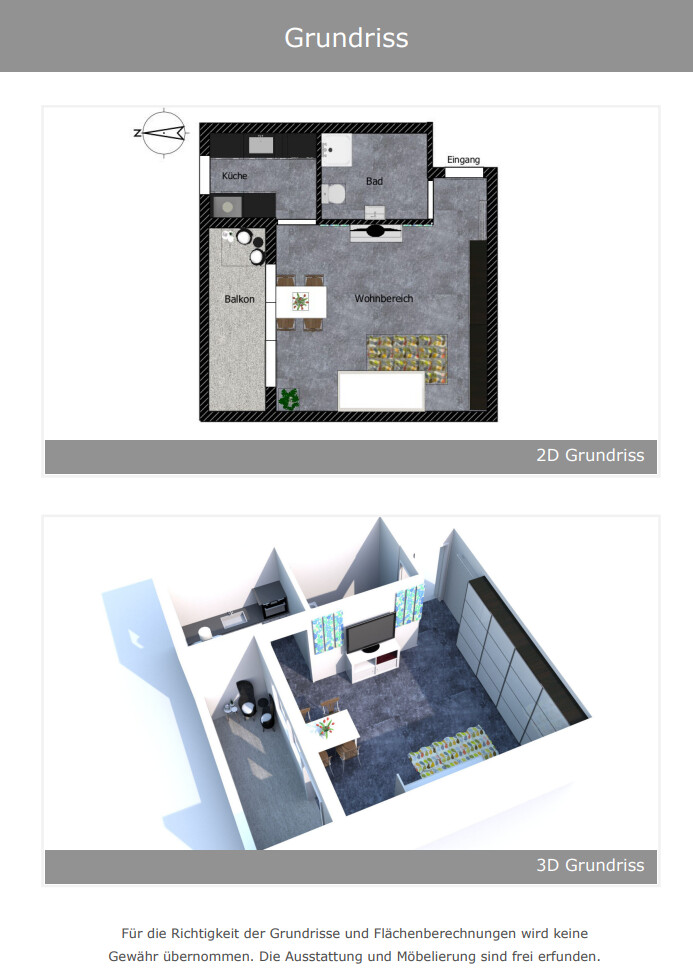 – Damit Sie ein möglichst vollständiges Raumbild bekommen, erstellen wir beispielhafte Grundrisse der Immobilie.