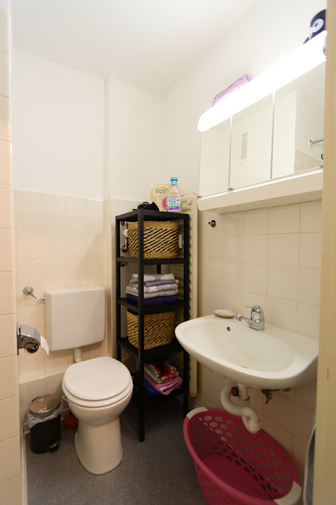 + Badezimmer: Dusche, Handwaschbecken, WC