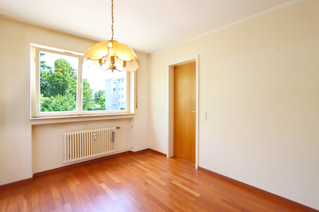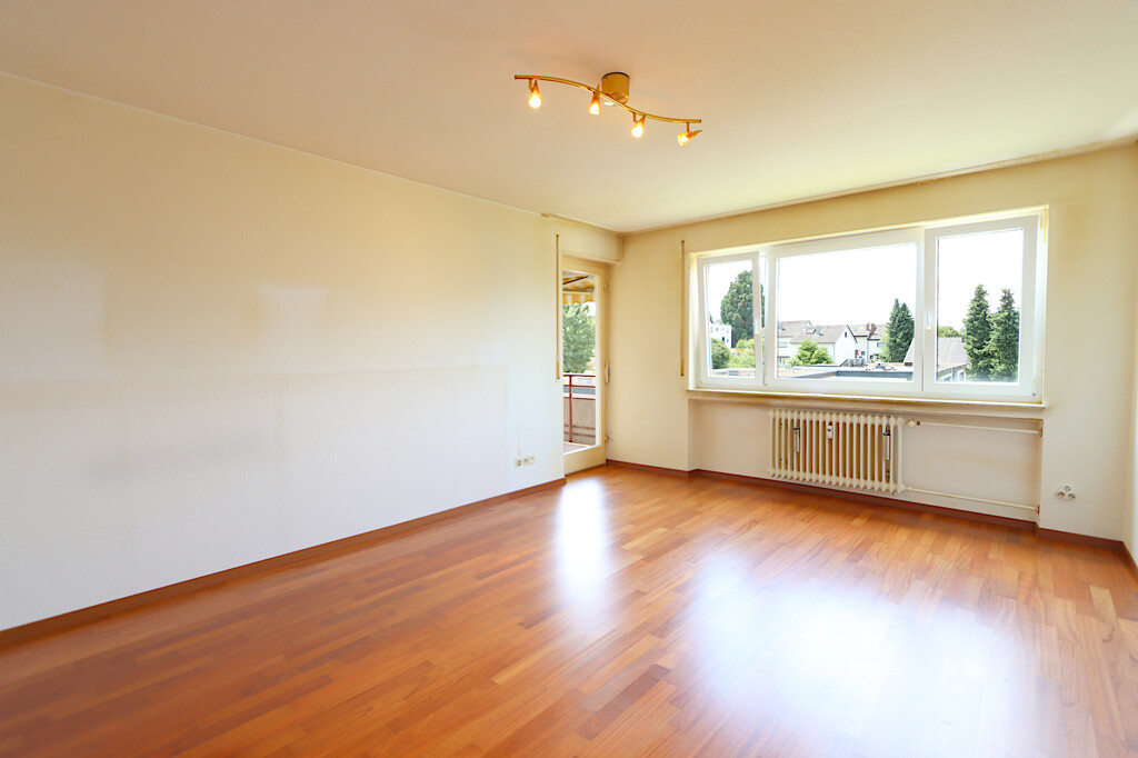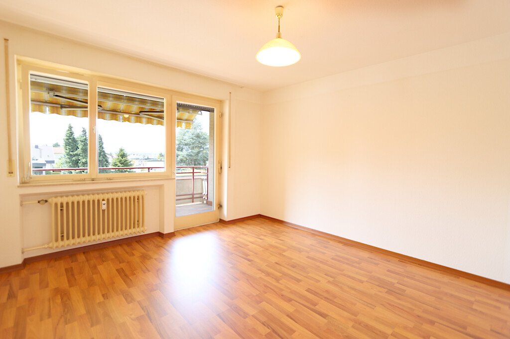 Das Herzstück dieser Immobilie bildet der großzügige Wohnbereich mit direktem Zugang zum sonnigen und überdachten Balkon. Die optimale Ausrichtung und der Parkettboden schaffen hier eine stets helle und freundliche Atmosphäre. Der Balkon lädt zum Verweilen im Freien ein und eröffnet einen ungestörten Blick über das charmante Wohngebiet in Bungalowbauweise.