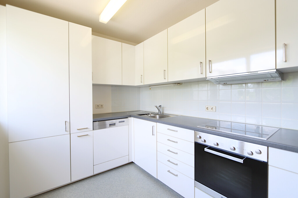 + Küche: Einbauküche in weißer Optik mit E-Geräten (bereits im Kaufpreis inbegriffen)