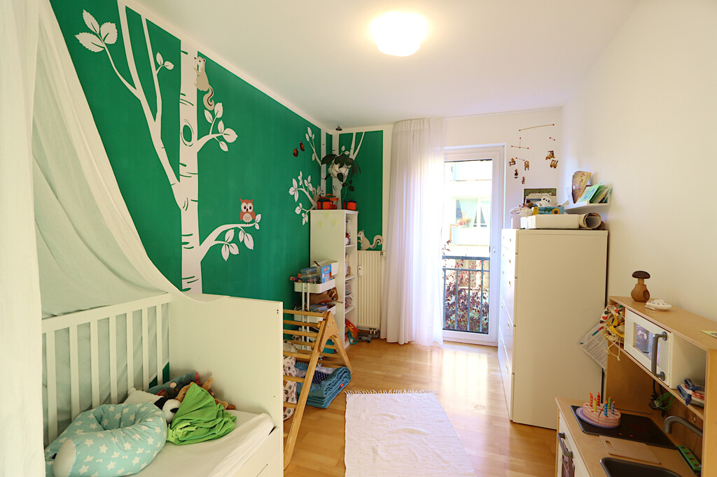 Mit insgesamt drei Schlafzimmern bietet die Wohnung vielseitige Nutzungsmöglichkeiten. Das großzügige Elternschlafzimmer beeindruckt durch seine angenehme Raumtiefe und eine ruhige Atmosphäre, die sich perfekt für erholsame Nächte eignet. Zwei weitere Zimmer stehen flexibel zur Verfügung – ob als Kinderzimmer, Homeoffice, Gästezimmer oder Hobbyraum. Die bodentiefen Fenster in den Schlafräumen und der gepflegte Parkettboden verleihen jedem Raum eine angenehme Wohnlichkeit.