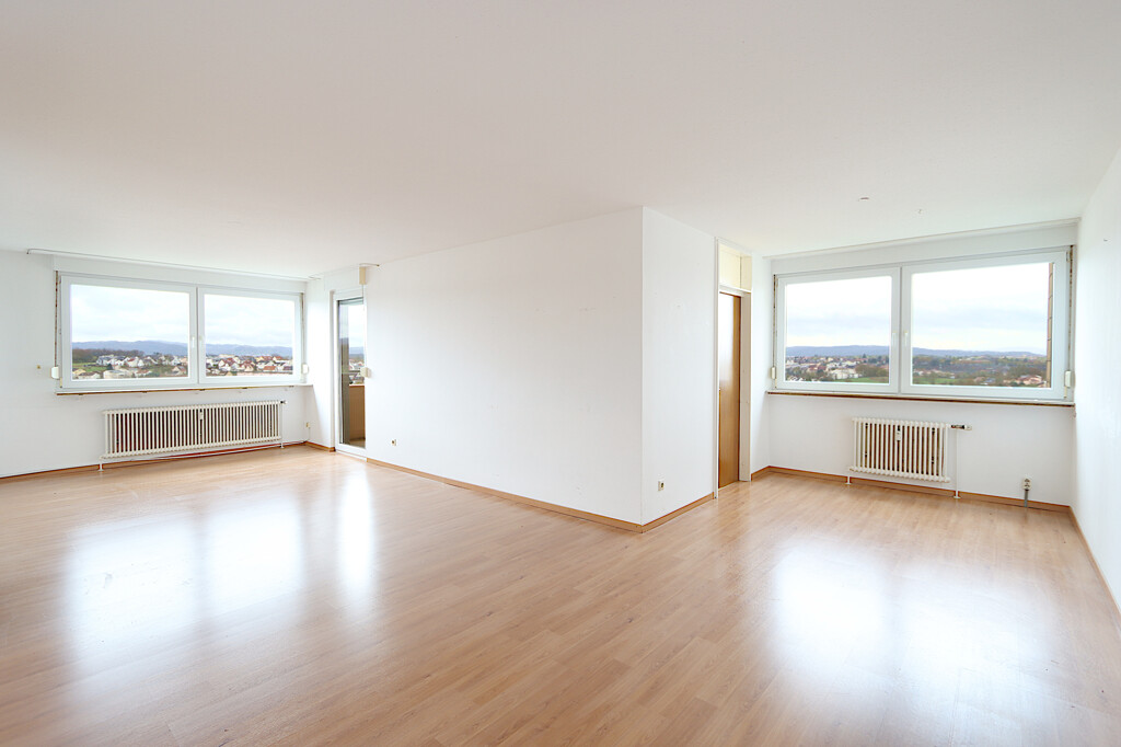 - Diese gepflegte und großzügig geschnittene 3,5-Zimmer-Wohnung mit ca. 95 m² Wohnfläche befindet sich im 11. Obergeschoss eines solide errichteten Mehrfamilienhauses aus dem Jahr 1975 in Backnang. Dank des vorhandenen Aufzugs gelangen Sie bequem und barrierearm in Ihre Wohnung – und werden dort mit einem besonderen Highlight begrüßt: einem beeindruckenden Weitblick über die Stadt und das Umland.