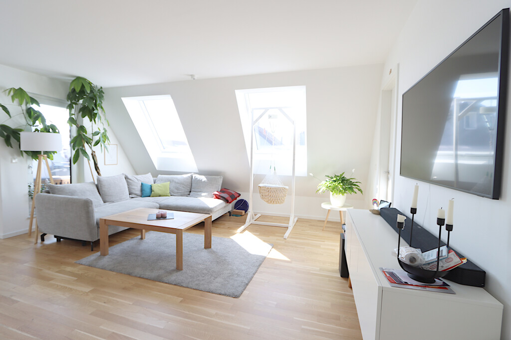 Mit einer Wohnfläche von ca. 109 m² erstreckt sich die Wohnung über das dritte Obergeschoss sowie das Dachgeschoss eines gepflegten Mehrfamilienhauses mit Aufzug. Die Kombination aus durchdachtem Grundriss, großzügigen Fensterflächen, stilvoller Ausstattung und warmen Materialien schafft ein Wohngefühl, das sowohl modern als auch behaglich ist – ideal für Familien, Paare oder Freiberufler mit Platzbedarf.