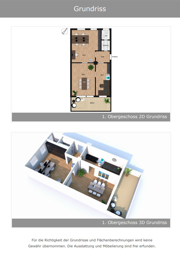 – Damit Sie ein möglichst vollständiges Raumbild bekommen, erstellen wir beispielhafte Grundrisse der Immobilie.