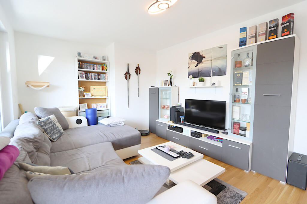 Schon beim Betreten der Wohnung fällt der durchdachte Grundriss positiv ins Auge. Die großzügige Diele führt Sie direkt in den hellen und offen gestalteten Wohn- und Essbereich. Bodentiefe Fenster und hochwertiges Echtholzparkett schaffen hier ein modernes und gleichzeitig behagliches Wohngefühl. Von hier aus betreten Sie auch die erste der beiden Loggien – ein geschützter Rückzugsort im Freien, ideal zum Entspannen oder für gesellige Stunden mit Freunden.