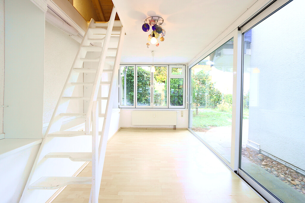 + beheizte Laube: mit bodentiefen Fenstern, als zusätzlicher Wohnraum/Büro/Hobbyraum nutzbar